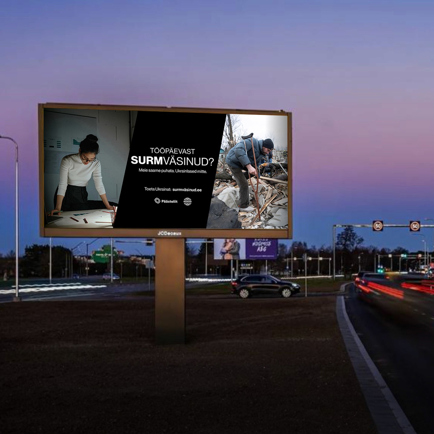 A digital campaign created in collaboration with Päästeliit and Mondo, supported by outdoor media and radio advertisements. Despite a modest €500 budget, the campaign successfully raised €30,000 in support of Ukraine within a month.